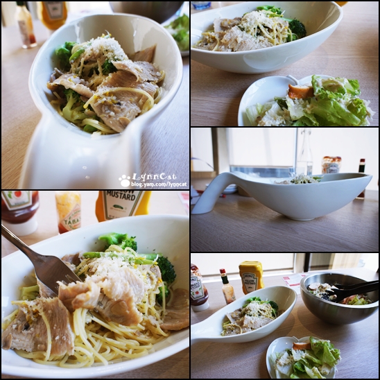 沙拉、磚餅與義大利麵--均為主食