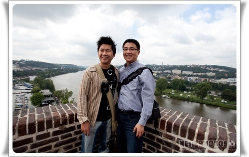 肯尼與旺旺站的位置就是可以遠眺百塔之城-布拉格的最佳定位點